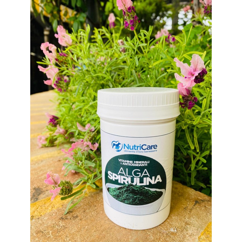 ALIMENTO COMPLEMENTARE PER CANI - IN POLVERE. Fonte concentrata di proteine, vitamine (B12 e A), minerali (ferro e calcio) e antiossidanti, grazie a questi nutrienti fornisce un grande supporto per energia e vitalità.