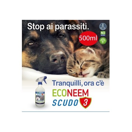 Econeem Scudo 3 è un antiparassitario naturale per cani e gatti, formulato per l'applicazione topica cutanea. Questo prodotto, chiamato EcoNeem Scudo 3, combina tre oli essenziali per creare una sinergia di azione: