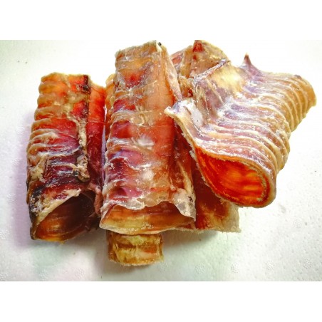 Grazie alla loro durezza riescono quasi a essere al pari delle op quali colli di tacchino, come imopegno necessario alla masticazione. Le trachee essiccate sono un validissimo premio per i nostri cani, cartilagine costituitra da un gel ricco di condriotisolfati. Prodotto naturale essiccato in forno non contiene additivi ne conservanti o coloranti.