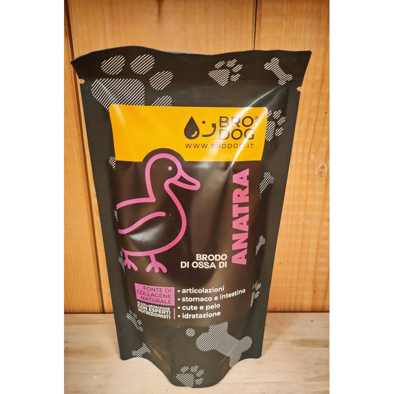 ingredienti: acqua, ossa di anatra (30%), carote biologiche.